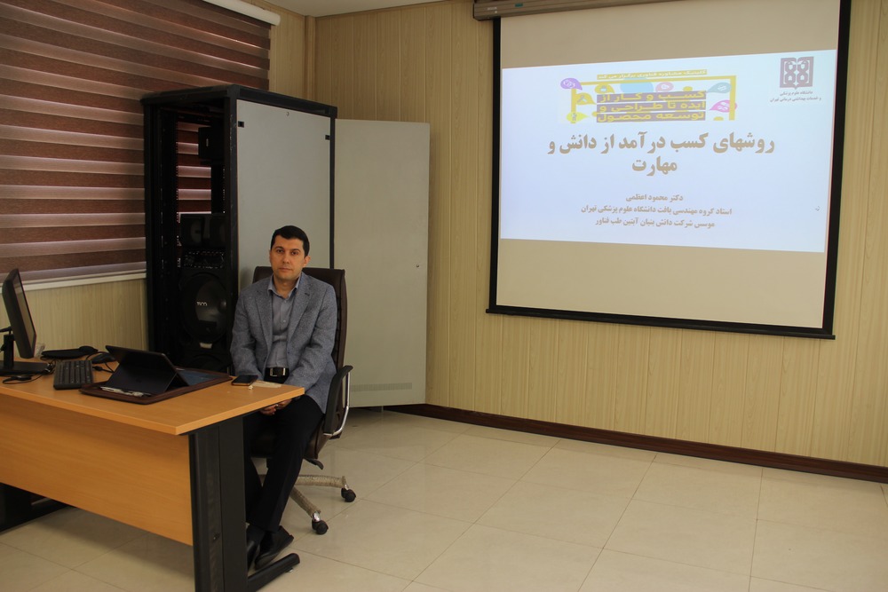 در این کارگاه، دکتر محمود اعظمی، استاد گروه مهندسی بافت و مؤسس شرکت دانش‌بنیان آبتین‌طب فناور، به‌عنوان مدرس جلسه به تبیین مسیرهای مختلف درآمدزایی از دانش، ایده و مهارت پرداخت.