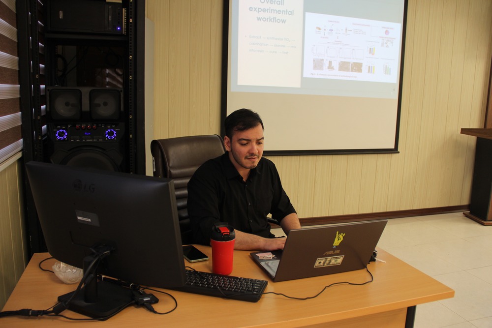 در این نشست، هیراد جوادی، دانشجوی کارشناسی ارشد بیوتکنولوژی پزشکی، مقالهای با عنوان “Antimicrobial mechanical and molecular docking analysis of dental composite resin incorporating green synthesized titanium dioxide nanoparticles from Vitis vinifera extract” را ارائه کرد.